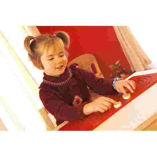 Movement loosens out and trains muscles, puts you in a good mood and allows you to think straight. It is therefore positive for our physical, intellectual and mental health. Tandem Boards encourage the user to make parallel hand movements and therefore help develop the fine motor skills necessary for writing and painting, as well as laterality and hand-eye coordination. This also trains concentration and good observing skills but above all the complex patterns make the hands move faster and more evenly to the target if the “path” is grasped beforehand. Contents: 1 wooden box with sliding lid (32.5x55x7.5 cm), 5 wooden plates with different patterns, 10 knobs.
