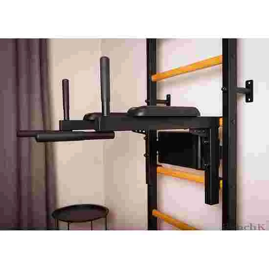 The BenchK “313B” fitness wall bars can be securely mounted on the wall. The beechwood oval rungs (30×40 mm) are easy to grip. The built-in pull-up bar is made of metal and can easily withstand a load of up to 150 kg. It’s an ideal fitness station for use in schools, clubs and gyms.