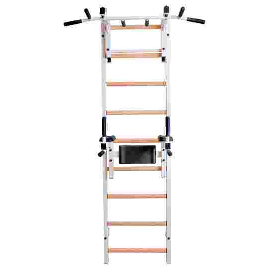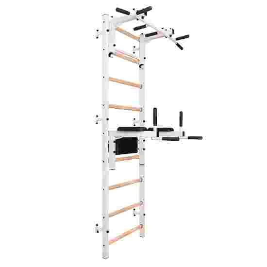 The BenchK “712” fitness wall bars are both an attractive interior feature as well as an effective workout station, regardless of whether set up in your home, office or a gym. Featuring 4 hooks and a felt pad, the pull-up bar can be conveniently adjusted to a height that suit your needs. When turned over, it can even be used as a barbell rest (max. load of 200 kg). Filled with polyurethane foam, the dip station is easy to clean and well padded. The dip station can also be adjusted to suit your needs and it can be removed for compact storage when not in use. The “712” wall bars are great for a host of different exercises – including pull-ups, dips and ab crunches – allowing you to work virtually your entire body.