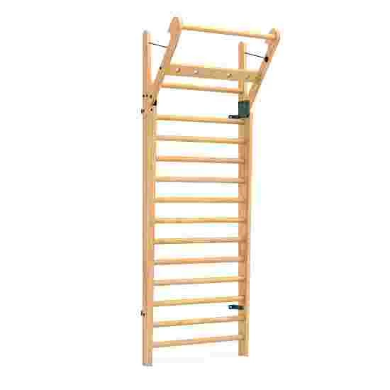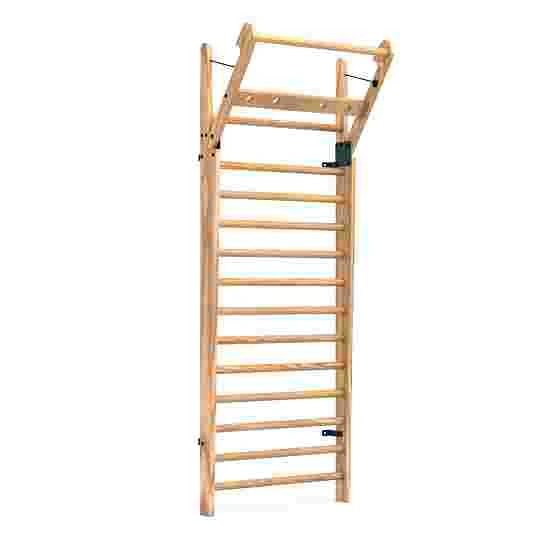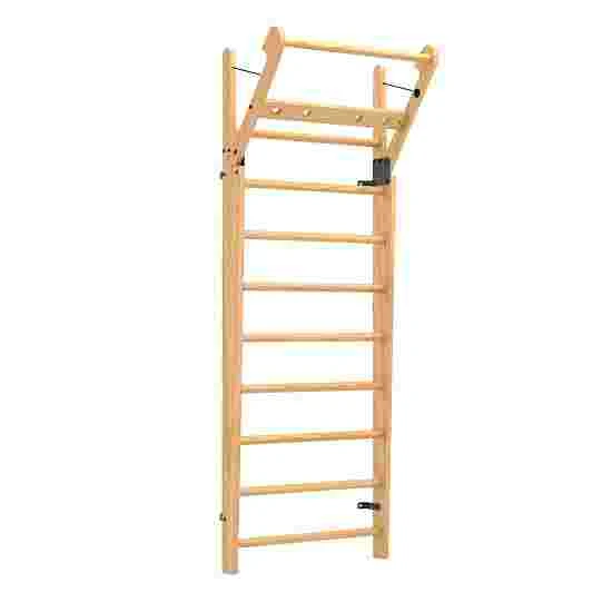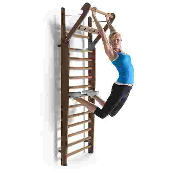 The NOHrD wall bars with foldout bar are made of elegant wood. The curved silhouette gives the wall bars a significant appearance that can be harmoniously integrated into any room. Securing cords attached to the built-in folding bar ensure safe training, and automatically reel themselves in when folding the bar back up. The NOHrD wall bars with foldout bar are available with either 10 or 14 rungs and provide a variety of different-angled grip positions for stretching and body-weight exercises.
