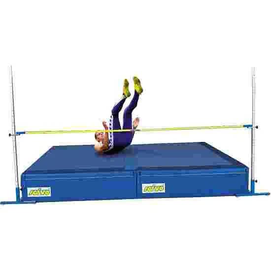 The Reivo “Super” combi soft mat is perfect for indoor and outdoor use and can also be used as a high jump cushion. For outside use, please also use a rain hood and slatted frame. The core is made of high-quality foam and has an air-chamber system, making the mat particularly soft. The top is made of smooth tarpaulin and the underside is made of pimpled gymnastics mat material. In addition, mesh fabric on the sides ensure the air is expelled perfectly upon landing. A 20-cm-wide fleece band is attached to the top of the mat, allowing you to join several mats together with ease.
