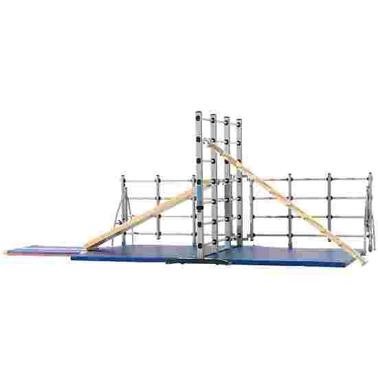 The Spieth “Just for Kids” star wall bars were specially developed for use in children’s gymnastics and feature dimensions that have been specifically tailored to suit preschool-aged children. They consist of a main set of wall bars and two sets of smaller, fold-out wall bars. Thanks to the star-shaped arrangement of the bars once set up, it’s easy to add other elements such as ladders, gymnastics benches and balance beams to the frame. This makes it perfect for creating ever-changing gymnastics landscapes. The two mats included ensure maximum safety when climbing and doing gymnastics. Sample exercise instructions included.
