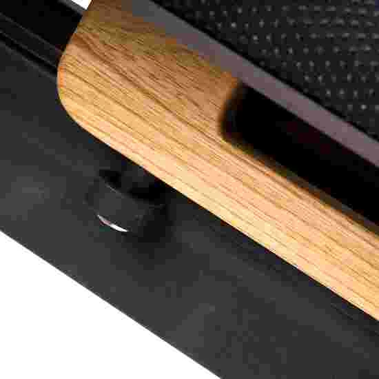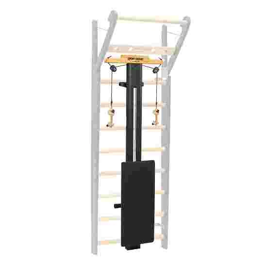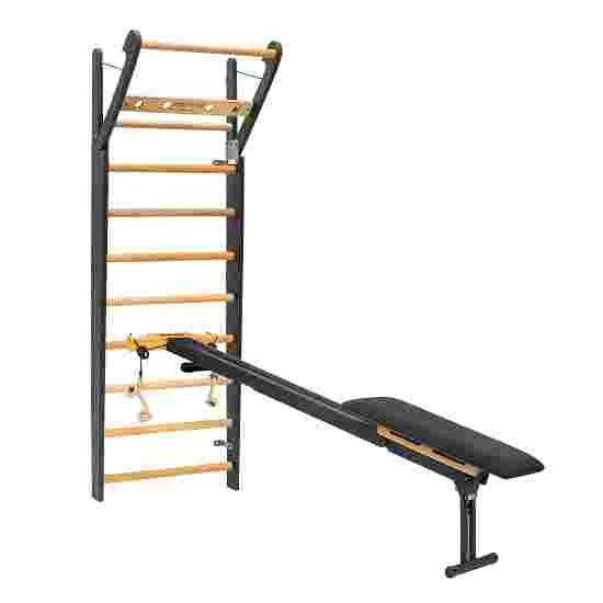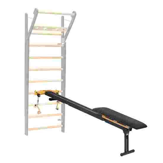Can be hooked into the wall bars at any height. Also suitable for leg training when used vertically and with its feet retracted. Compact storage. Silent cable pulley with ball-bearing rollers. Real leather upholstery. LxW: approx. 190×60 cm. Bench (LxW): 85×35 cm. Max. load: 120 kg. 19 kg.