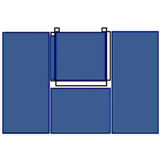 The Sport-Thieme fall protection mat set consists of 5 mats, which can be quickly and easily connected together using the hook-and-loop/fleece fasteners. The mats feature a composite foam core (80 kg/mÂł) and a blue Polygrip cover.